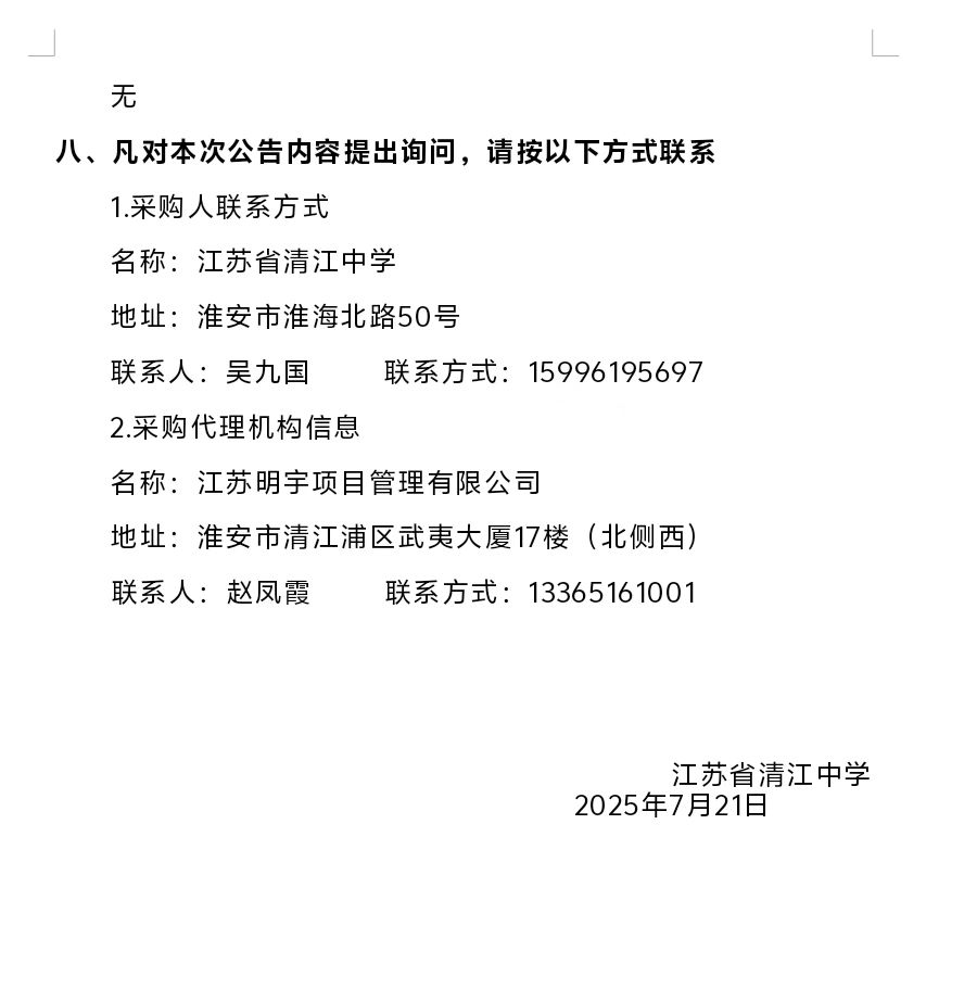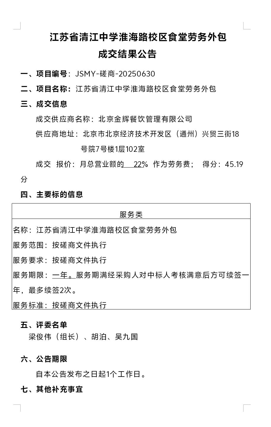 江蘇省清江中學(xué)淮海路校區(qū)食堂勞務(wù)外包成交結(jié)果公告