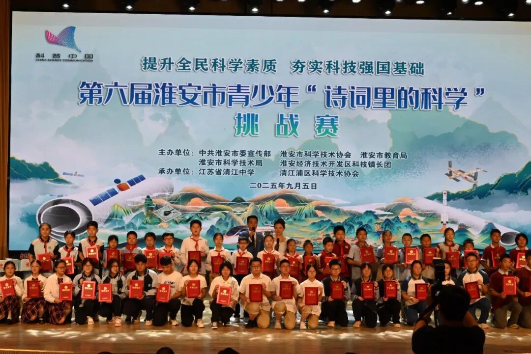 啟動(dòng)儀式現(xiàn)場(chǎng),還舉行了第六屆淮安市青少年“詩(shī)詞里的科學(xué)”挑戰(zhàn)賽。此次賽事歷經(jīng)網(wǎng)絡(luò)選拔,從全市118所學(xué)校、2.3萬(wàn)余名選手中,選拔出中小學(xué)各8支代表隊(duì),進(jìn)行最后的角逐。賽事分為“有問(wèn)必答”“快速搶答”“飛花令”三個(gè)環(huán)節(jié),層層遞進(jìn)考驗(yàn)選手的“詩(shī)詞積累”與“科學(xué)認(rèn)知”。