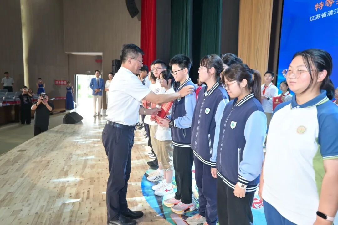 經(jīng)過(guò)近2小時(shí)的激烈角逐和公正的評(píng)審,比賽結(jié)果最終揭曉。江蘇省清江中學(xué)代表隊(duì)在“詩(shī)詞里的科學(xué)”挑戰(zhàn)賽中脫穎而出,榮獲中學(xué)組特等獎(jiǎng)!省清江中學(xué)黨委書(shū)記等領(lǐng)導(dǎo)嘉賓為各代表隊(duì)頒獎(jiǎng)。