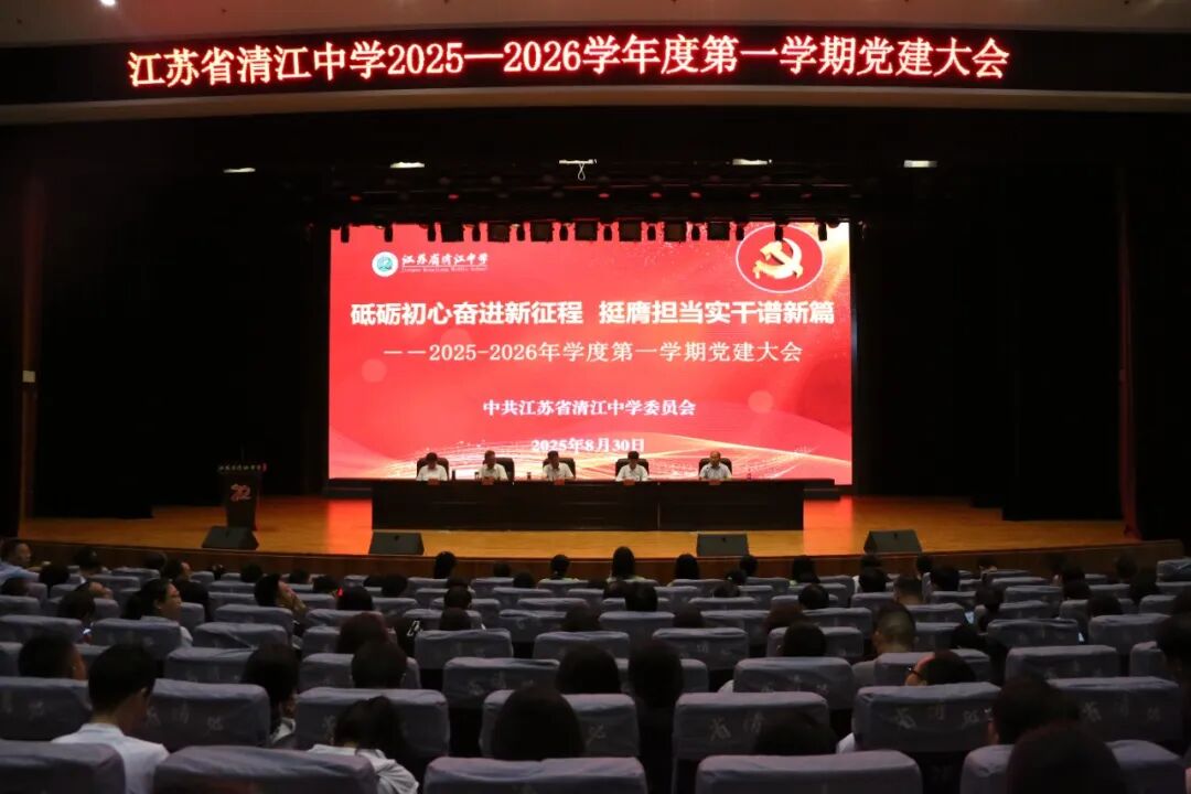 【概要描述】8月30日,江蘇省清江中學(xué)在千人報(bào)告廳舉行新學(xué)期黨建大會。黨委書記陳欣作工作報(bào)告,黨委副書記、校長喬中云,副校長王耀松,副校長蔡正鵬及全體黨員教職工參加。會議由黨委副書記陸延禮主持。