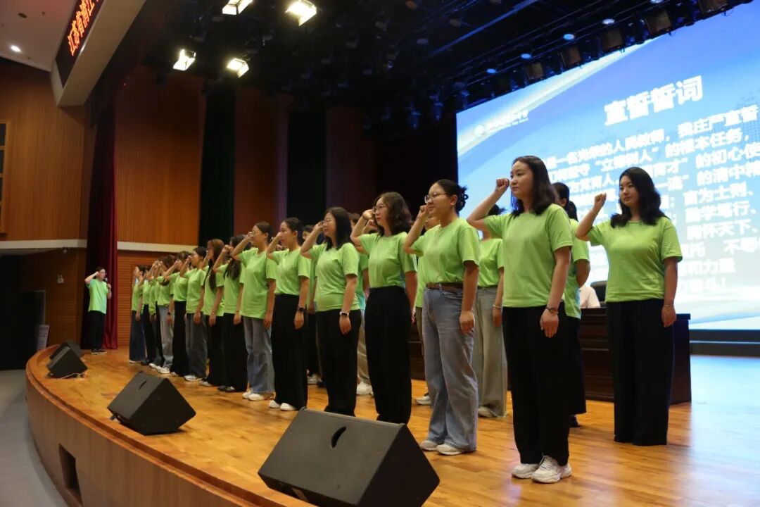 團委書記王甫,淮海北路校區(qū)高三年級主任黃保球,珠海東路校區(qū)高三年級負責人丁中明,初三年級主任李偉,教研組長代表季曉萍老師,班主任代表仝晶晶老師分別作表態(tài)發(fā)言。