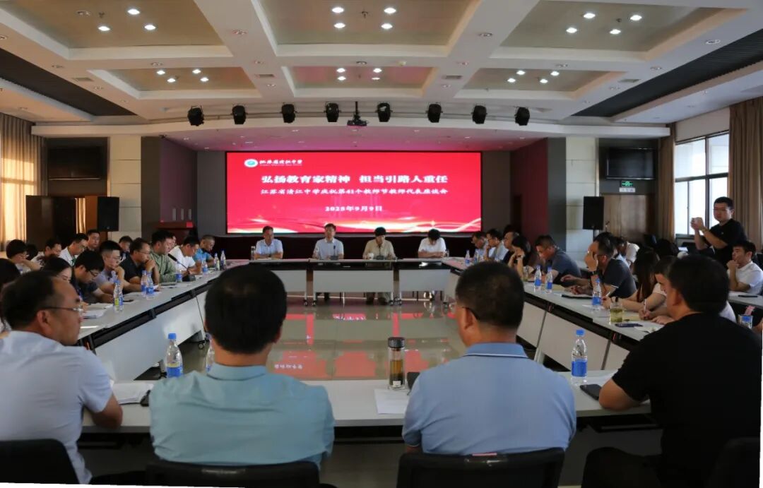 金秋好時節(jié),奮進新學期。在第41個教師節(jié)來臨之際,江蘇省清江中學于9月9日下午在行政樓十二樓會議室召開以“弘揚教育家精神 擔當引路人重任”為主題的老中青教師代表座談會。學校領(lǐng)導班子成員、各處室年級主要負責人以及來自不同年級的老中青教師代表齊聚一堂,共話教育初心,暢談教育發(fā)展。