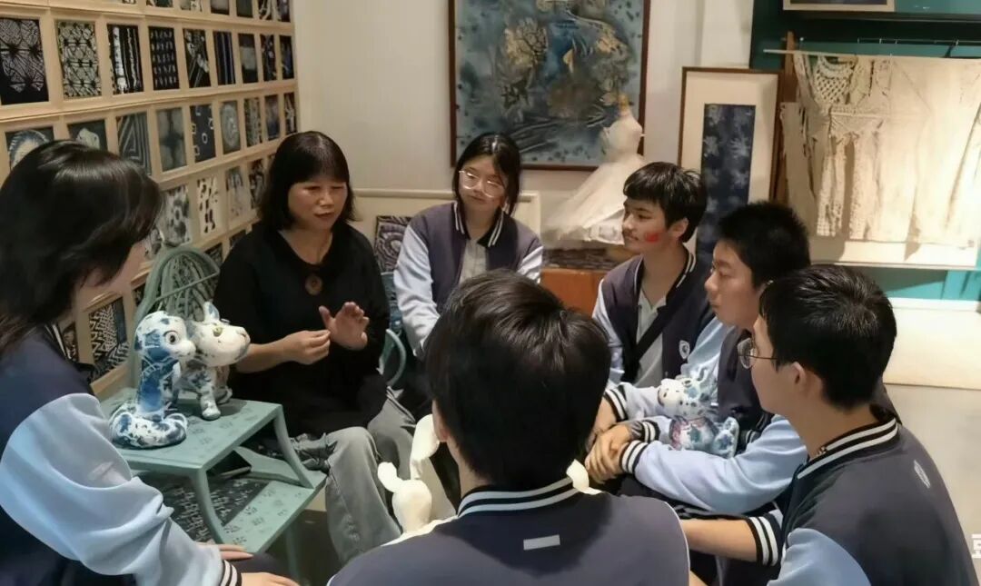 在同學(xué)們熱火朝天完成制作過程后,史睿涵代表大家對話錢教授,錢教授講述了這些年她從事非遺傳承工作的心得體會(huì)以及對扎染工藝的未來展望。錢教授對扎染事業(yè)的堅(jiān)守和熱愛,讓她在從業(yè)的三十多年中一直將傳承扎染當(dāng)作一種享受,并且在這三十年中不斷探索、不斷研究、不斷進(jìn)步,以求創(chuàng)造出更好的作品,讓更多人了解到這項(xiàng)傳統(tǒng)工藝。
