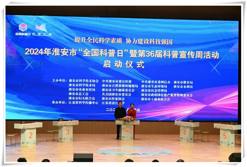 淮安市科協(xié)副主席朱從實(shí)宣布淮安市2024年“全國(guó)科普日”暨第36屆科普宣傳周活動(dòng)正式啟動(dòng)。