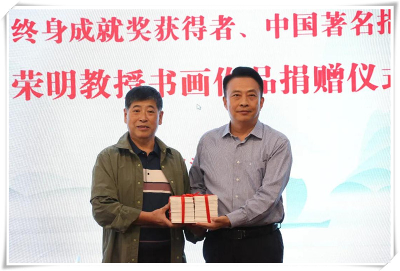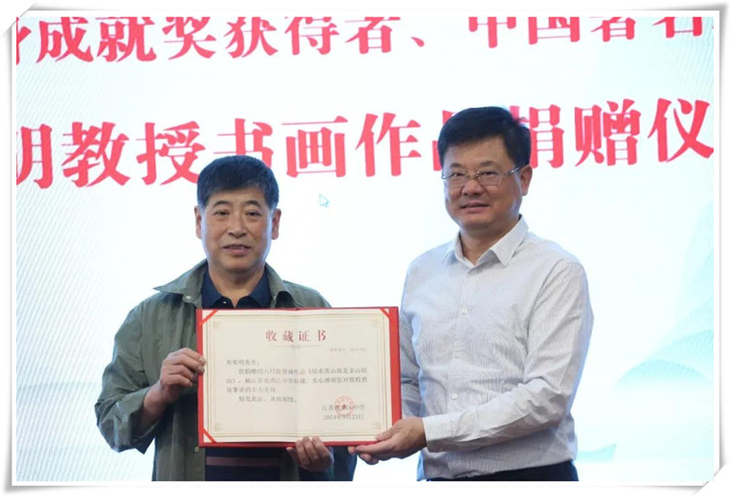 校黨委書(shū)記陳欣向鄧榮明先生頒發(fā)收藏證書(shū)。