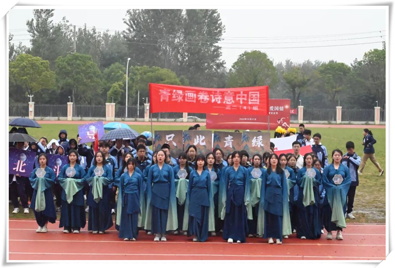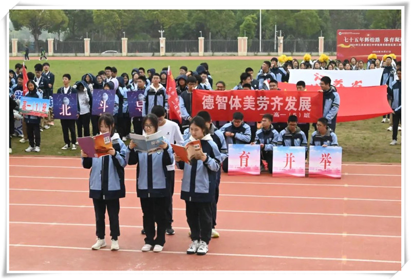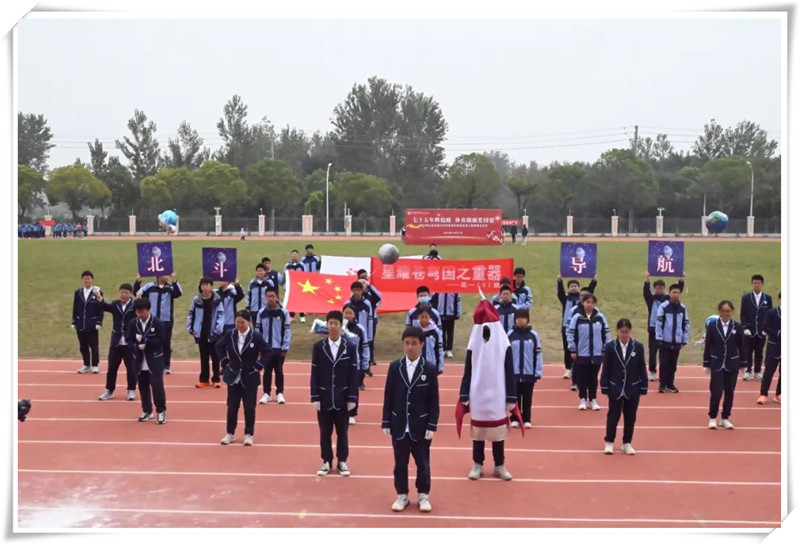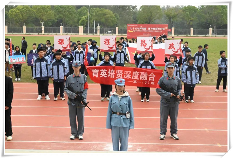 高一年級第二級部圍繞“新中國教育成就”的主題進(jìn)行入場展示。