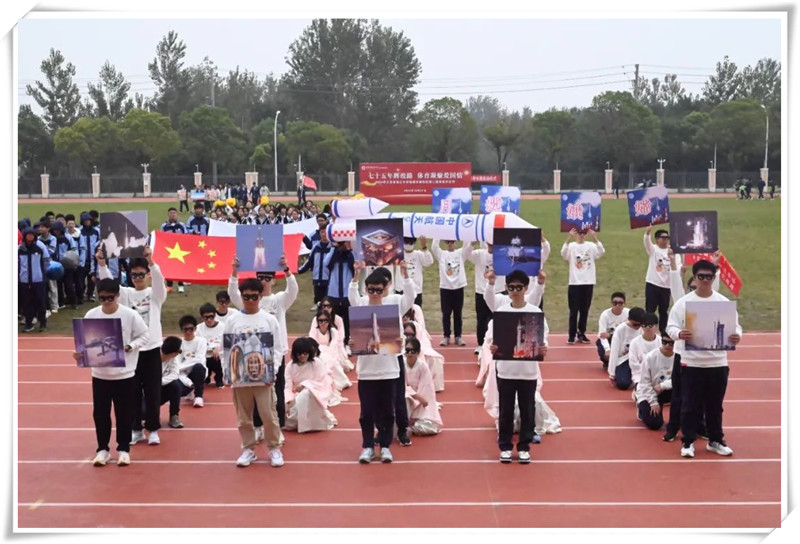 高一年級第一級部圍繞“新中國科技成就”的主題進(jìn)行入場展示。