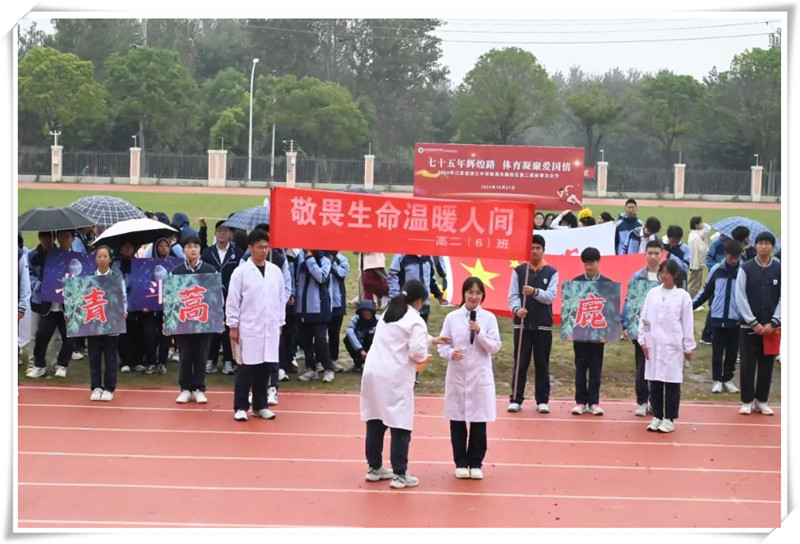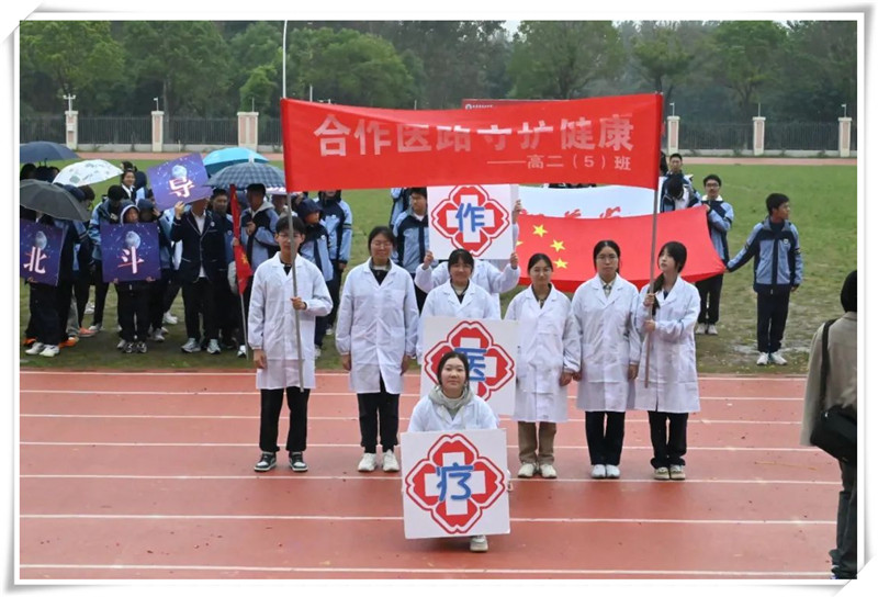 高二年級第二級部圍繞“新中國醫(yī)療衛(wèi)生”的主題進(jìn)行入場展示。