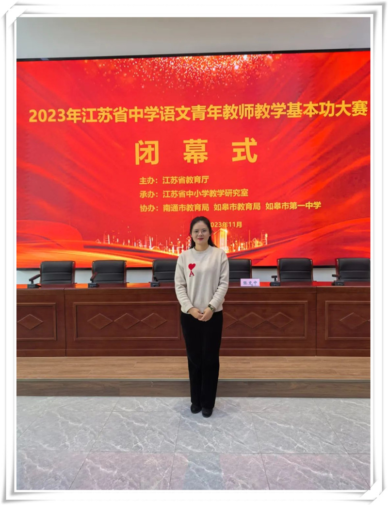 王茜,中共黨員,淮安市第三期“533”英才工程培養(yǎng)對象。曾獲得江蘇省高中語文基本功大賽一等獎(jiǎng),“師陶杯”論文評比一等獎(jiǎng),市優(yōu)課評比一等獎(jiǎng),國家通用語言文字教學(xué)能力大賽市特等獎(jiǎng)。多篇論文發(fā)表在《語文月刊》《語文教學(xué)與研究》《中學(xué)語文》等主流期刊上。多次開設(shè)市級公開課,主持省市級課題研究并參與多項(xiàng)課題研究,多篇教學(xué)設(shè)計(jì)獲得市一等獎(jiǎng)。指導(dǎo)多名學(xué)生在“語文報(bào)杯”“葉圣陶杯”“蘇教國際杯”等作文競賽中獲得優(yōu)異成績。曾被評為校“十佳班主任”、校“優(yōu)秀黨員”,多次被評為校“先進(jìn)個(gè)人”