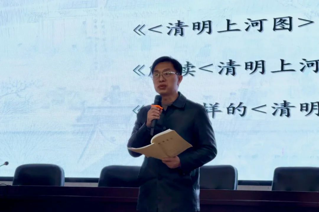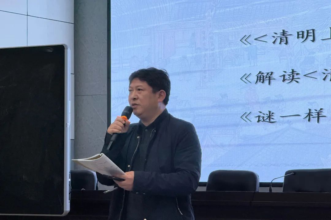 初中語(yǔ)文組李干老師開(kāi)設(shè)了展示課《品“盛”立骨,鑒汴京風(fēng)華》。李老師以"盛"字立骨解讀北宋末年的繁華表征,借助"夢(mèng)回"意象解讀來(lái)實(shí)現(xiàn)"現(xiàn)實(shí)凋敝—畫(huà)中繁華—精神返鄉(xiāng)"三層遞進(jìn),揭示藝術(shù)創(chuàng)作的歷史療愈功能。李老師通過(guò)文本解讀和藝術(shù)鑒賞雙重視角有意識(shí)地構(gòu)建藝術(shù)鑒賞類文本的賞析范式,最終實(shí)現(xiàn)張擇端繪畫(huà)語(yǔ)言與毛寧文學(xué)語(yǔ)言的相互轉(zhuǎn)譯。