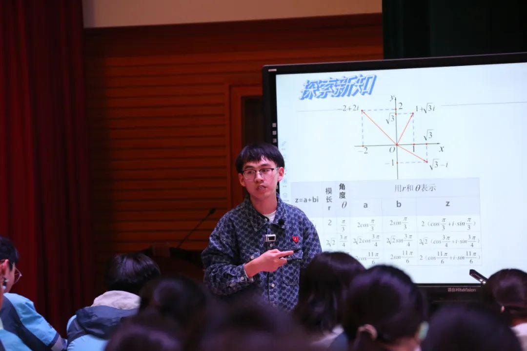 高中數(shù)學(xué)組李亞群老師開(kāi)設(shè)了展示課《復(fù)數(shù)的幾何意義》。李老師通過(guò)生活中的定位問(wèn)題將學(xué)生引入到了復(fù)數(shù)的情境之中,在強(qiáng)化一系列概念關(guān)系的過(guò)程中,強(qiáng)調(diào)復(fù)數(shù)運(yùn)算的幾何意義,并將幾何意義拓展到復(fù)數(shù)的乘法、除法,引導(dǎo)學(xué)生利用數(shù)形結(jié)合的思想解決復(fù)數(shù)問(wèn)題。