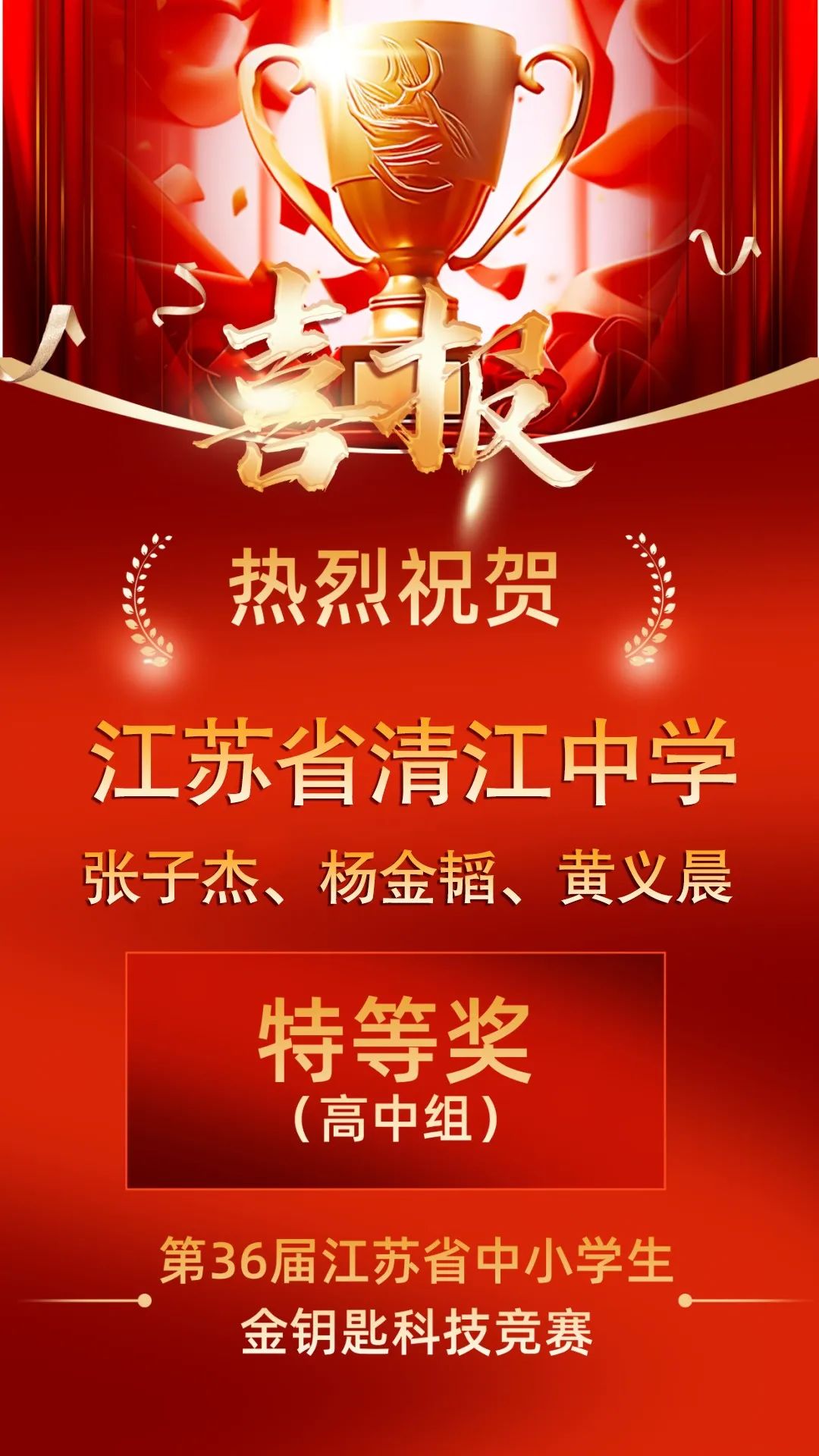 4月26日至27日,第三十六屆江蘇省中小學(xué)生金鑰匙科技競(jìng)賽團(tuán)體賽在南京舉行。本屆賽事由江蘇省教育廳、江蘇省科學(xué)技術(shù)協(xié)會(huì)、江蘇省精神文明建設(shè)辦公室、江蘇省科學(xué)技術(shù)廳、中國科學(xué)院南京分院聯(lián)合主辦。江蘇省清江中學(xué)代表隊(duì)喜獲高中組特等獎(jiǎng)。其中,張子杰榮獲“最佳選手”稱號(hào)(全省僅3人)。